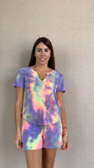 Experience effortless style with the Tie Dye V-Neck Knit Tee. Its soft knit fabric ensures all-day comfort, while the flattering V-neck adds a touch of sophistication. The vibrant tie-dye design makes each piece uniquely yours, perfect for standing out in any casual setting. Whether paired with jeans or layered under a jacket, this tee brings a fresh, trendy vibe to your everyday look.