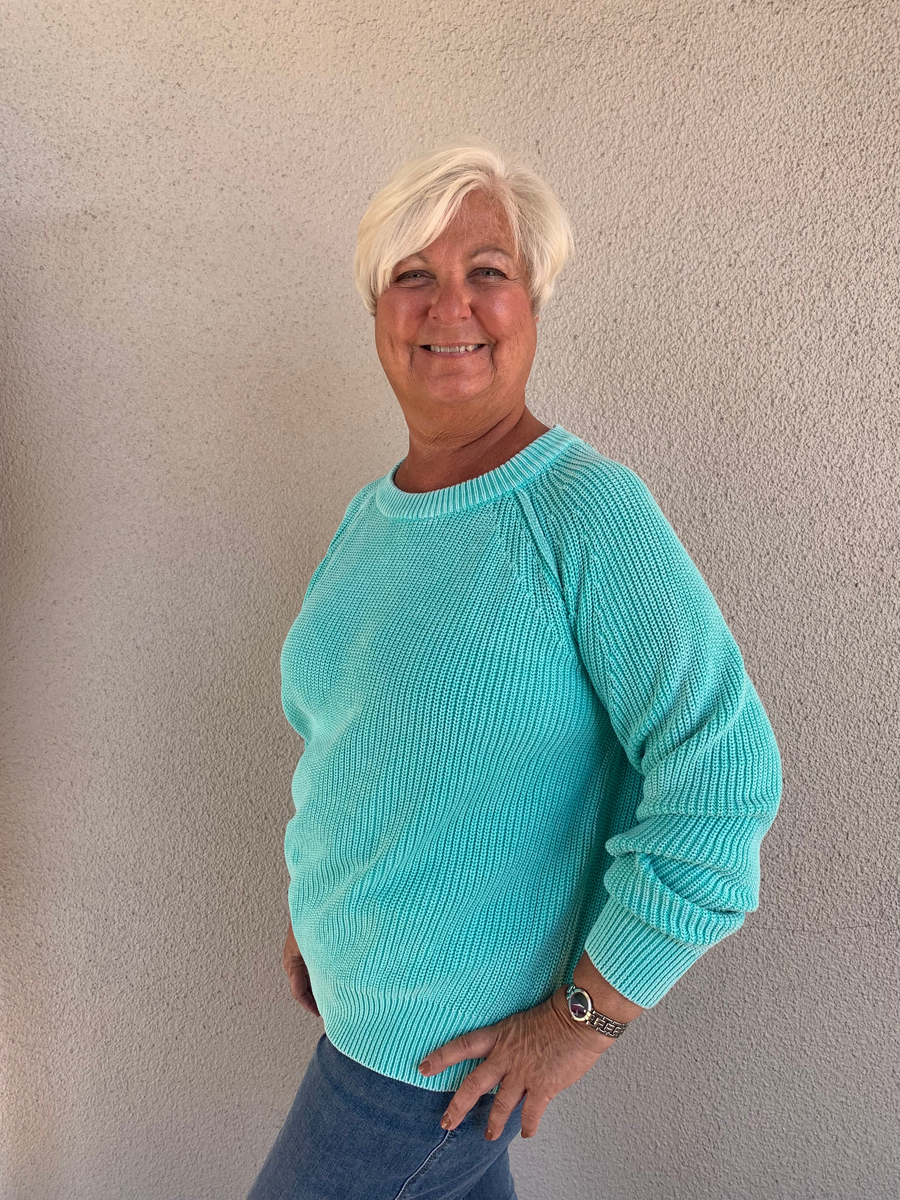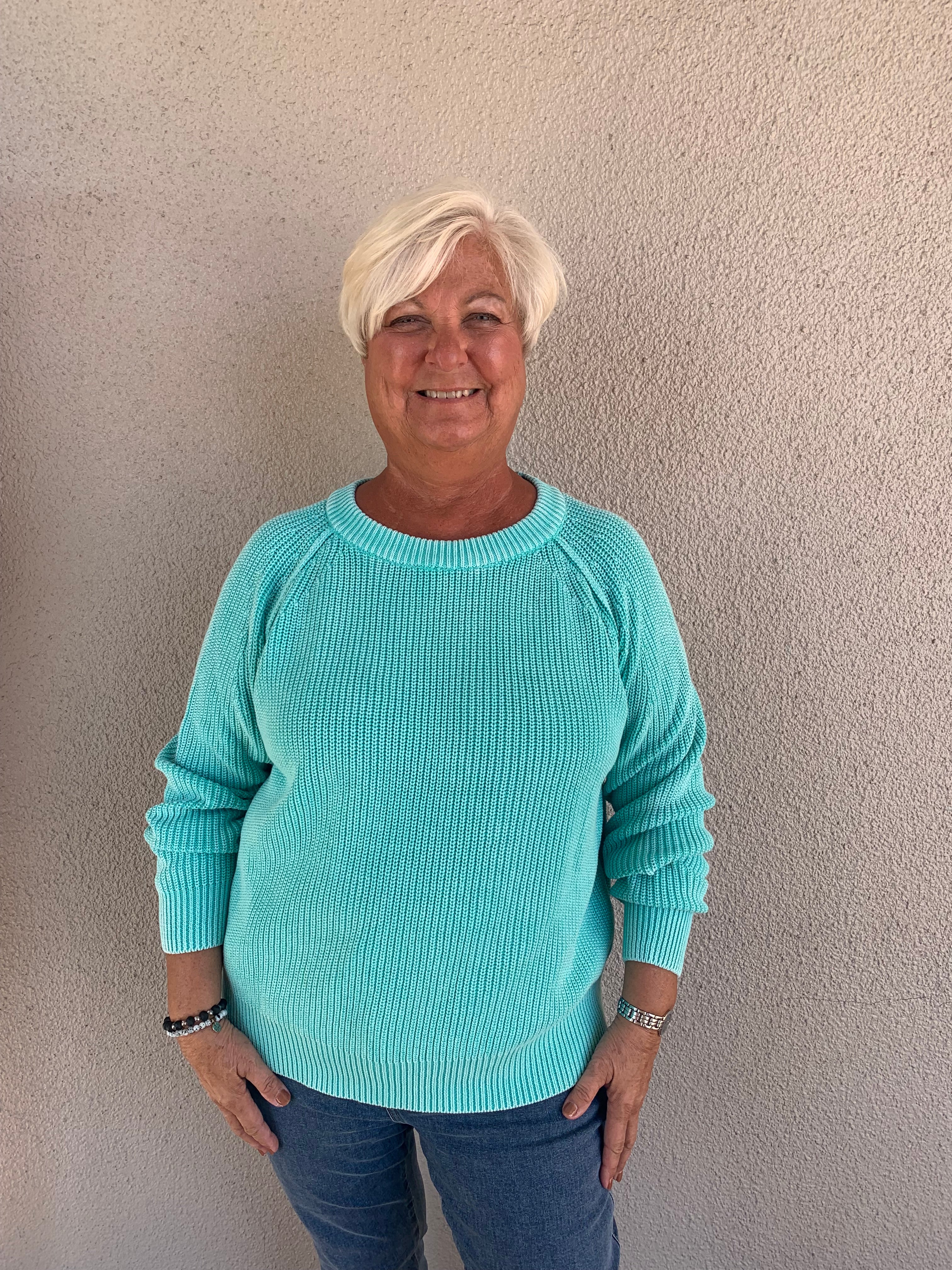 100% Cotton Washed Yarn Raglan Sleeve Pull-Over Sweater