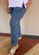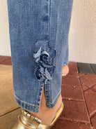 Add a touch of floral elegance to your wardrobe with these Stretch Denim Crop Pants with Side 3D Roses. Crafted from a blend of 73% Cotton, 23% Polyester, 3% Viscose, and 1% Spandex, they offer a soft, stretchy fit that provides comfort and flexibility all day long. The regular rise and slim leg create a flattering silhouette, while the side 3D rose detailing brings a unique and feminine touch to the classic denim design. With a 25" inseam, these crop pants offer the perfect length for a chic, summery look that pairs effortlessly with both casual and dressier tops.