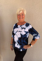 Abstract Floral Print Soft Knit Top with Tulip Sleeve Detail