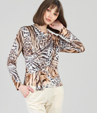 Animal Print Long Sleeve Knit Top with Loop Front Detail