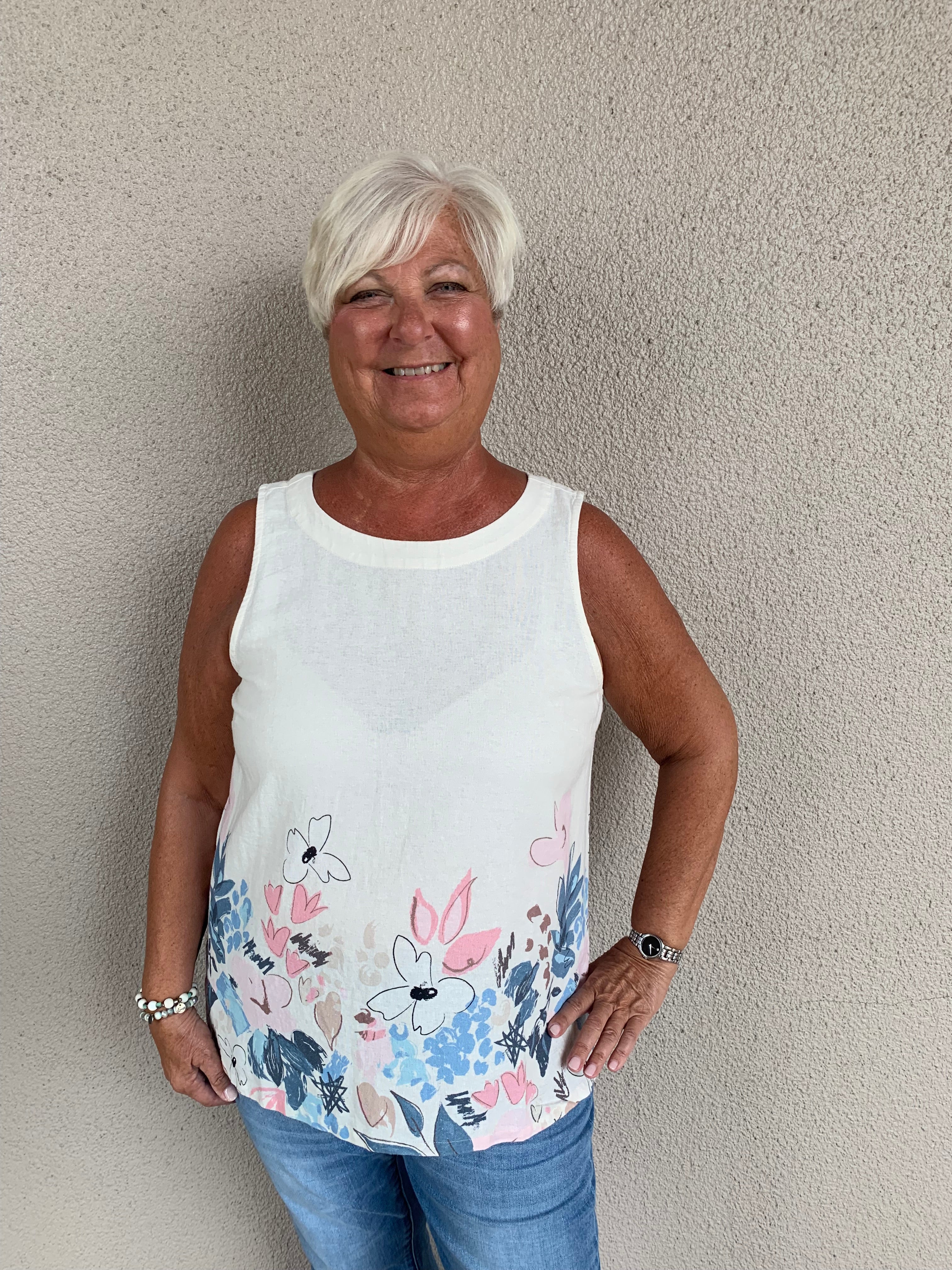 This Border Printed Linen Sleeveless Top combines casual elegance with a unique design. Made from a blend of 55% Linen and 45% Viscose, it offers a breathable, lightweight feel that's perfect for warm weather. The border print adds a pop of vibrant pattern, creating a stylish contrast against the natural linen fabric. With a flattering high-low hem, this top offers a relaxed yet sophisticated fit that pairs effortlessly with everything from jeans to skirts, making it a versatile piece for your summer wardrobe.