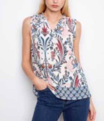 Elevate your everyday wardrobe with this striking Border Print Ruffle Neck Sleeveless Top. Crafted from breathable viscose, it features an eye-catching printed design and feminine ruffle neckline that adds instant sophistication to any outfit. Perfect for layering or wearing solo, this versatile piece transitions seamlessly from day to evening. The sleeveless silhouette keeps you cool and comfortable while the premium fabric drapes beautifully against your skin. A wardrobe essential that effortlessly combines style and comfort.