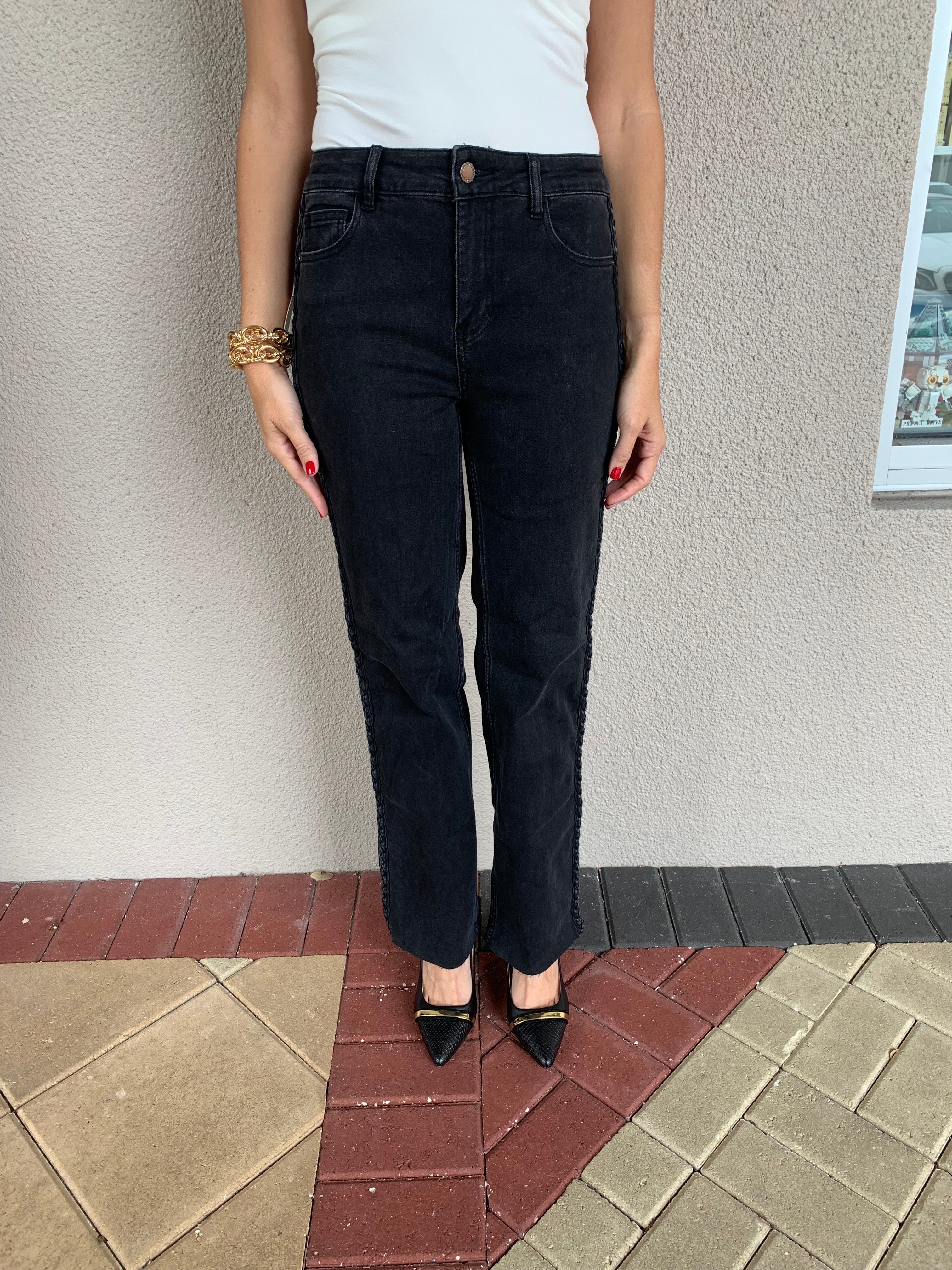 These stunning Braided Side Seam Straight Leg Jeans bring together classic denim style with a unique twist. Crafted from comfortable stretch denim, they feature a chic straight-leg fit and mid-rise waist that exudes confidence. The braided side seams and raw edge hem add eye-catching detail, making these jeans ideal for both casual outings and days at the office. With a classic five-pocket design, they provide the perfect blend of fashion and function.
