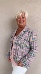 Elevate your layering game with the stunning Tea Rose Multi Boucle Knit Boxy Shacket. Crafted from a soft, textured boucle knit fabric in a dreamy tea rose multi-color, this shacket exudes a perfect balance of comfort and sophistication. Designed with a chic notch collar, long sleeves, and button-tab cuff details, it’s a timeless piece that blends relaxed charm with a refined finish. The exquisite buttons add a touch of elegance, while the boxy fit makes it an effortless choice for layering over any outfit.