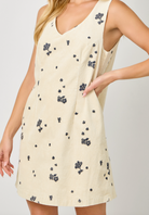 Corduroy Embroidered Wash Shift Dress with Side Pockets