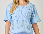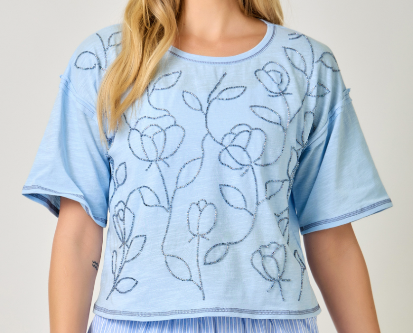 Cotton Boxy Fit Tee with Seed Bead Floral Detail