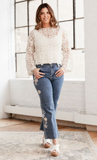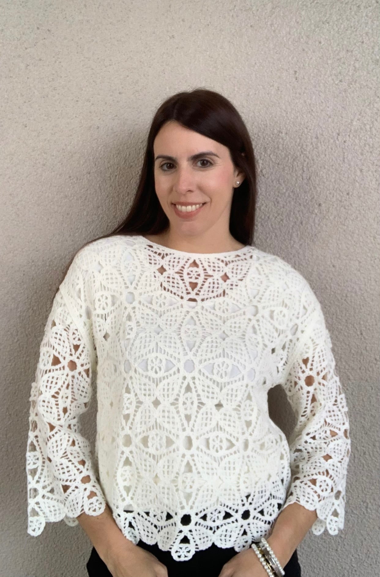 This crochet sweater is a stunning blend of delicate craftsmanship and effortless style. Featuring an intricate open-knit pattern, it creates a lightweight and breezy feel that’s perfect for layering. Subtle floral accents add a feminine and artistic touch, making it a versatile choice for any wardrobe. Its relaxed silhouette offers both comfort and elegance, perfect for pairing with jeans, skirts, or layered over dresses.