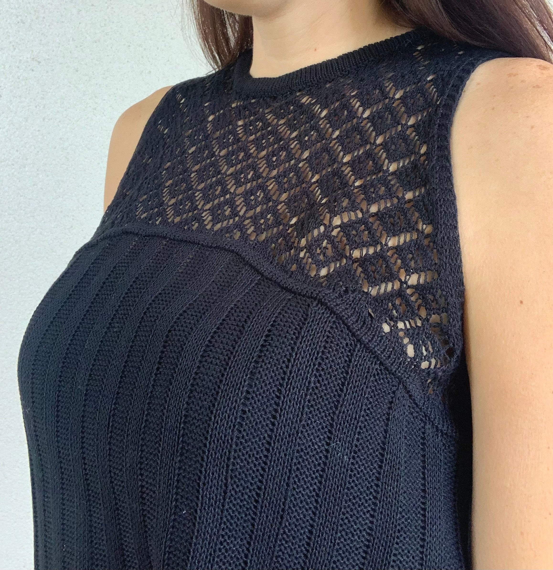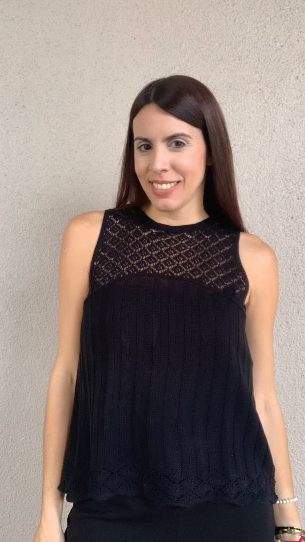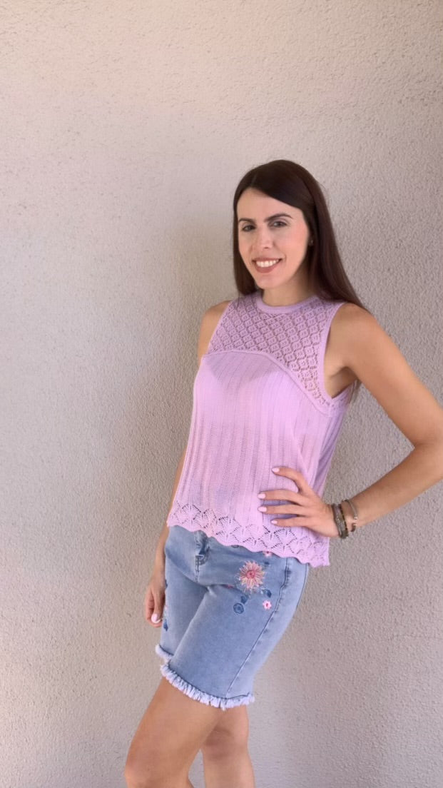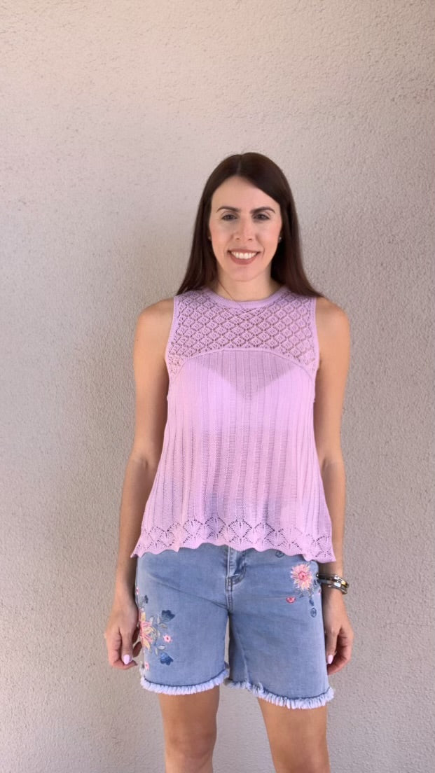 Crochet Yoke Sleeveless Sweater Top