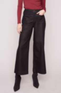 Cropped Wide Leg Flare Lurex Denim Pant with Patch Pockets