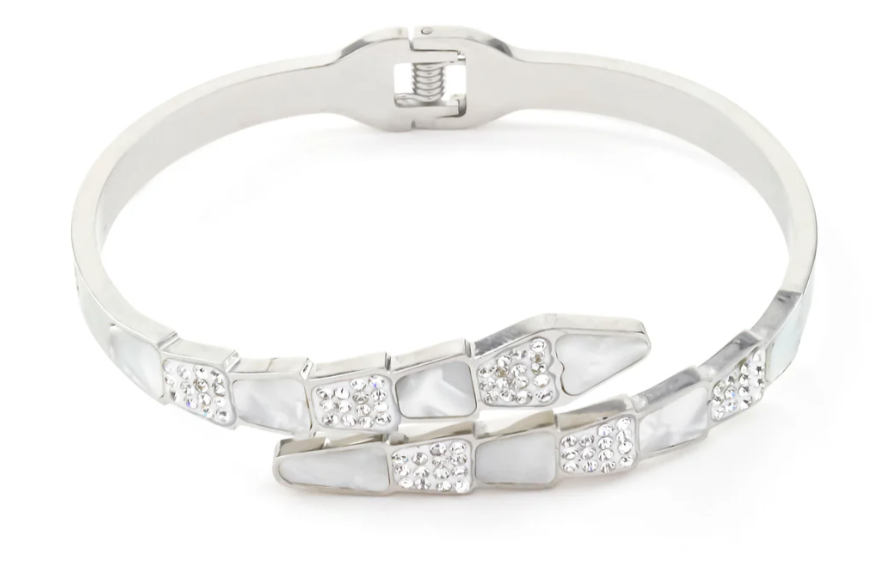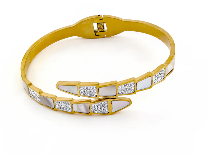 Crystal & Shell Inlay Snake Cuff Bracelet