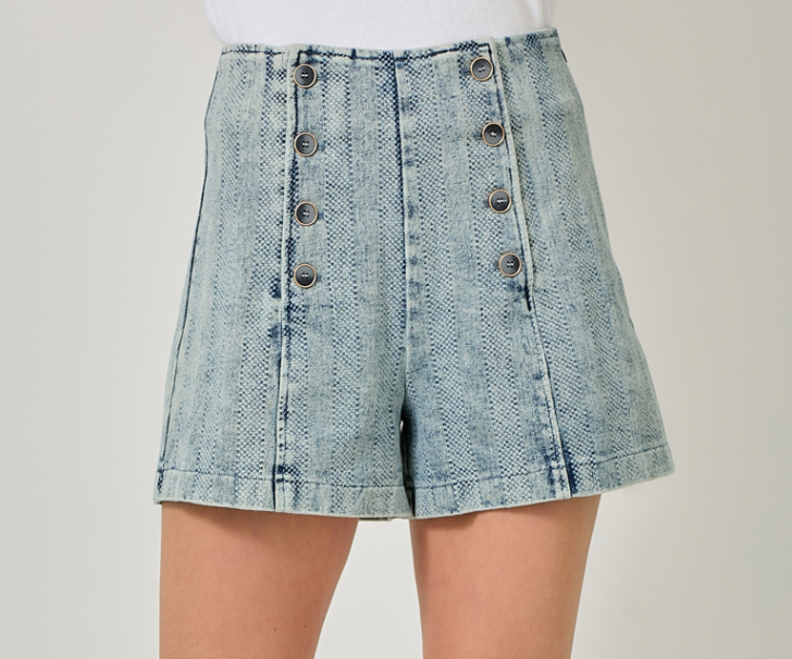 Elevate your summer wardrobe with these Double Breasted Wide Leg Denim Shorts. Featuring a stylish double-breasted front and a comfortable wide-leg cut, they offer both a trendy look and effortless movement. Perfect for casual outings or chic street style, these shorts combine classic denim durability with modern design for a versatile, must-have piece.