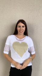 Fishnet 3/4 Sleeve Sweater with Lurex Heart