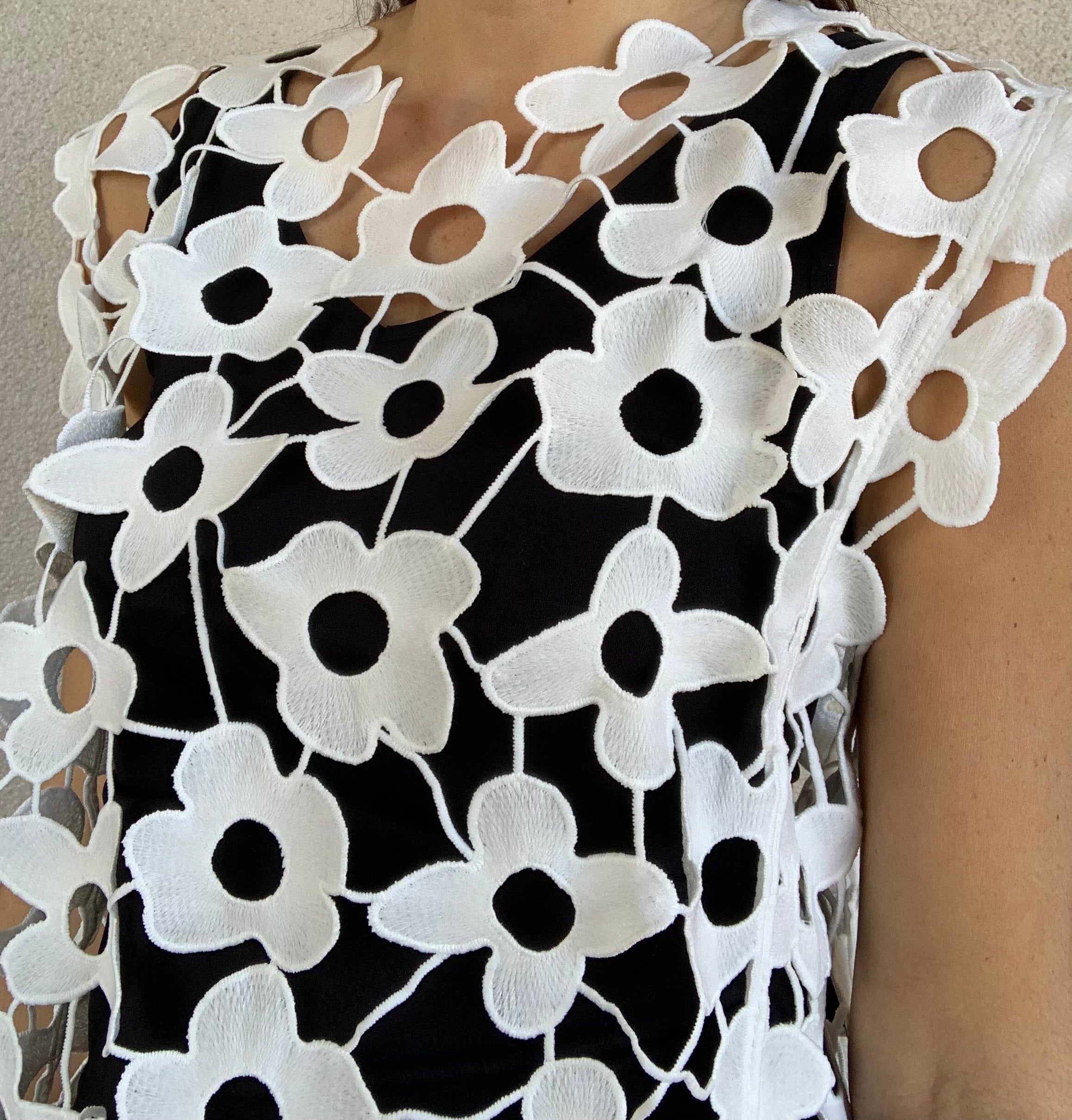 Elevate your wardrobe with the timeless charm of the Floral Lace Pop-Over Top. This sleeveless piece features exquisite 3D textured lace, adding depth and dimension to a classic silhouette. The top's delicate floral pattern exudes elegance, making it a versatile choice for both casual outings and special occasions.
