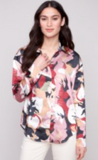 Floral Printed Satin Button Front Blouse