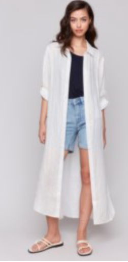 Foil Linen Tunic Dress with Roll Up Sleeves