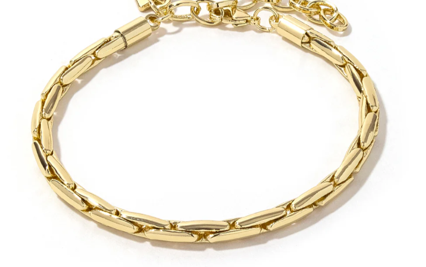 Elevate your style with this Gold Link Tubular Adjustable Bracelet, expertly crafted with 14K gold plating for a radiant finish. Its adjustable design ensures a perfect fit for any wrist, while being lead and nickel free guarantees comfort and safety for sensitive skin. This timeless piece adds a touch of elegance to any outfit, making it an essential accessory for everyday wear or special occasions.