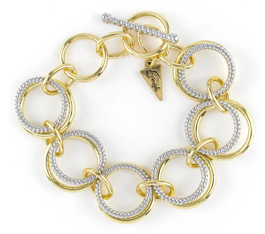 Gold & Silver Circle Chain Bracelet with Toggle Closure