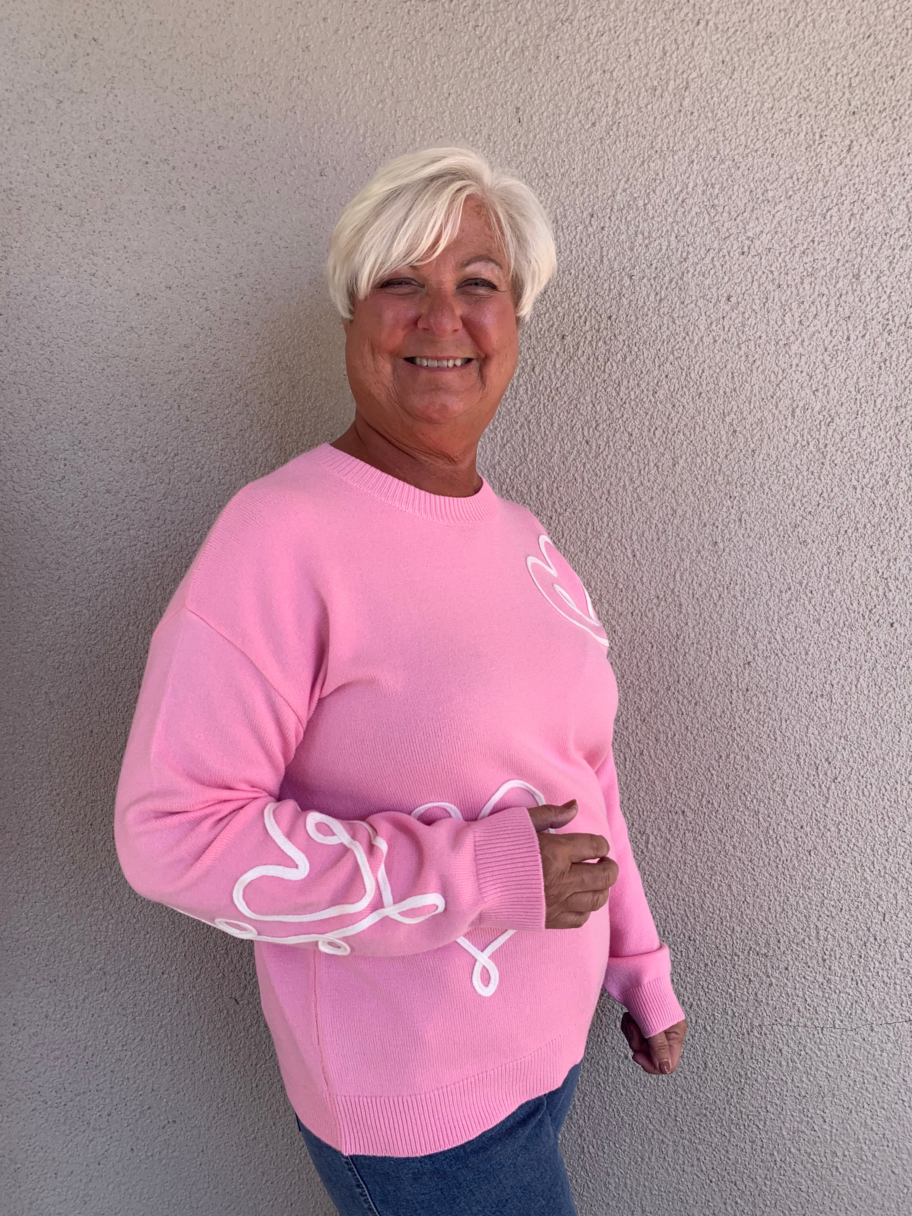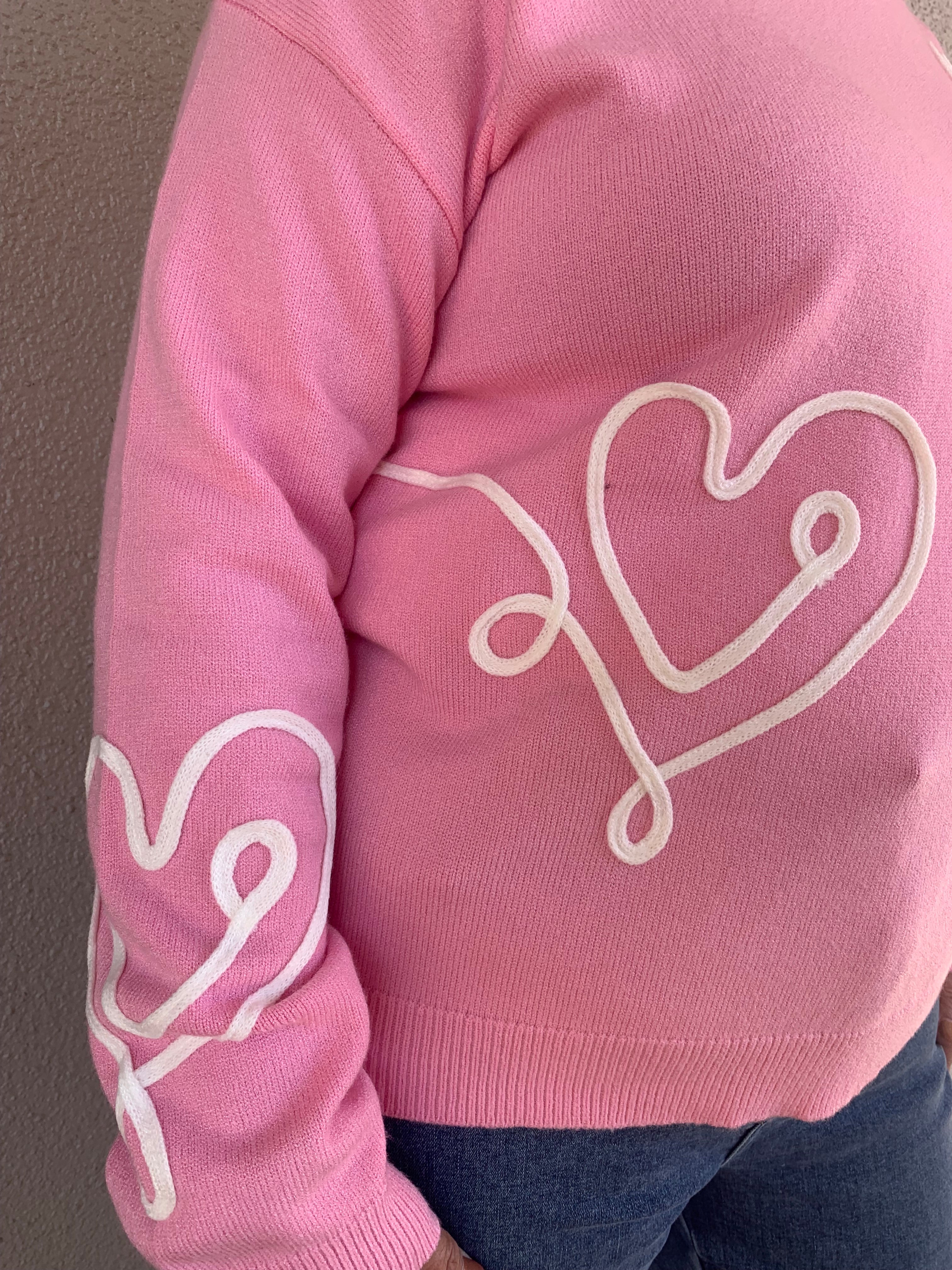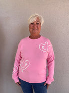 Heart Embroidered Long Sleeve Crew Neck Sweater