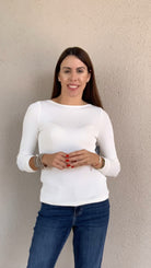 Long Sleeve Solid Color Boatneck Ribbed Top