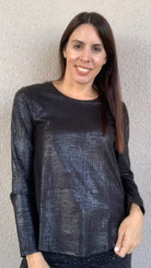Versatile and timeless, our scoop neck knit top in black distressed fabric is the ultimate blend of comfort and contemporary fashion. The relaxed fit and soft, breathable fabric ensure all-day wearability, while the scoop neck adds a touch of elegance. Effortlessly pair this top with your go-to denim and boots for a laid-back look, or switch to trousers for a more refined style.