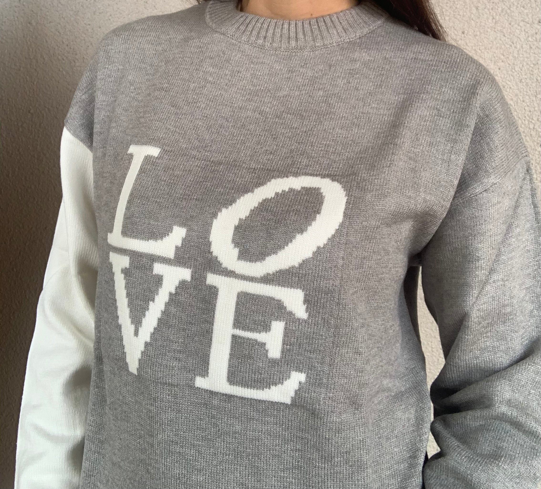 Spread love wherever you go with this cozy Two-Tone Sweater, a perfect blend of warmth and style. Designed with ribbed details at the neckline, hem, and cuffs, this sweater offers a relaxed fit that’s both comfortable and effortlessly chic. The contrasting tones add a modern touch, making it an ideal pullover for layering on cooler days or wearing solo as a statement piece.