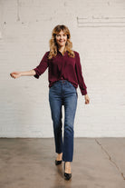 Designed with a 10" rise, these jeans sit comfortably at the waist, providing both style and support. The dark bronze stitching adds a touch of sophistication and contrast, enhancing the rich denim fabric.