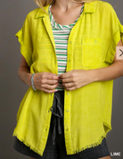 Expertly crafted with 100% rayon, this Mineral Washed Collared Button Front Blouse offers a unique and stylish addition to your wardrobe. The fray hem adds a touch of modernity, while the mineral washed fabric provides a luxurious feel and drape. Perfect for any occasion, this blouse is a must-have for any fashion-forward individual.