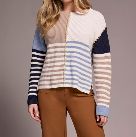Mixed Stripe Sweater with Contrast Stitch Detail