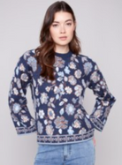 Printed Crew Neck Sweater with Bell Sleeve Detail