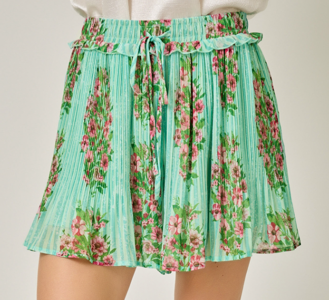 Printed Pleated Chiffon Shorts