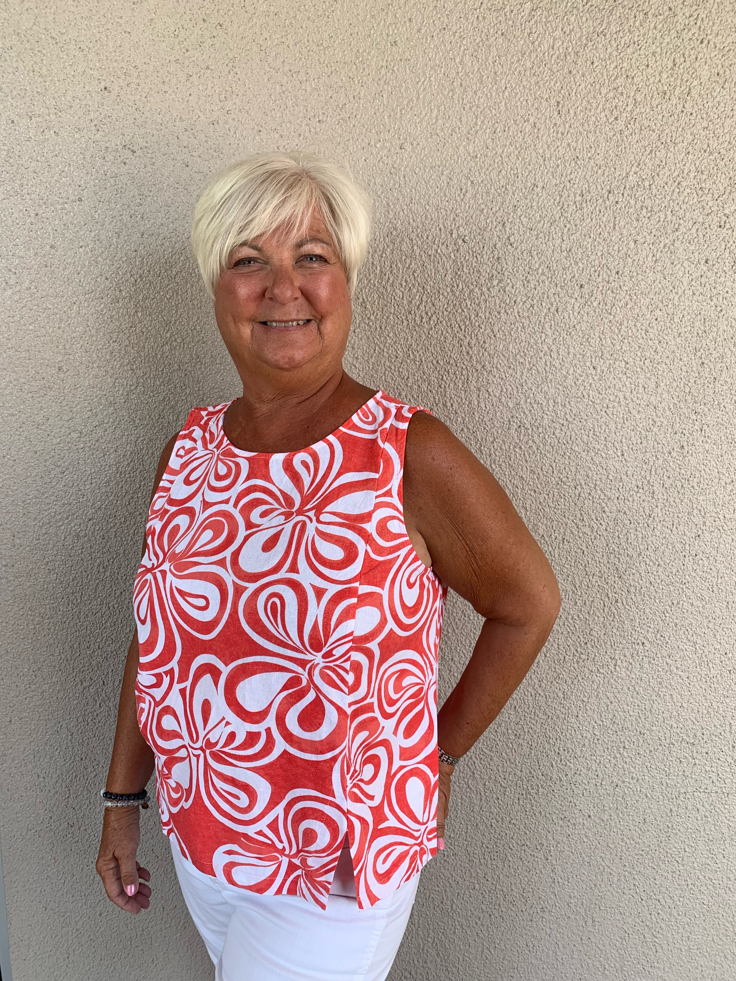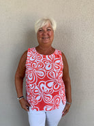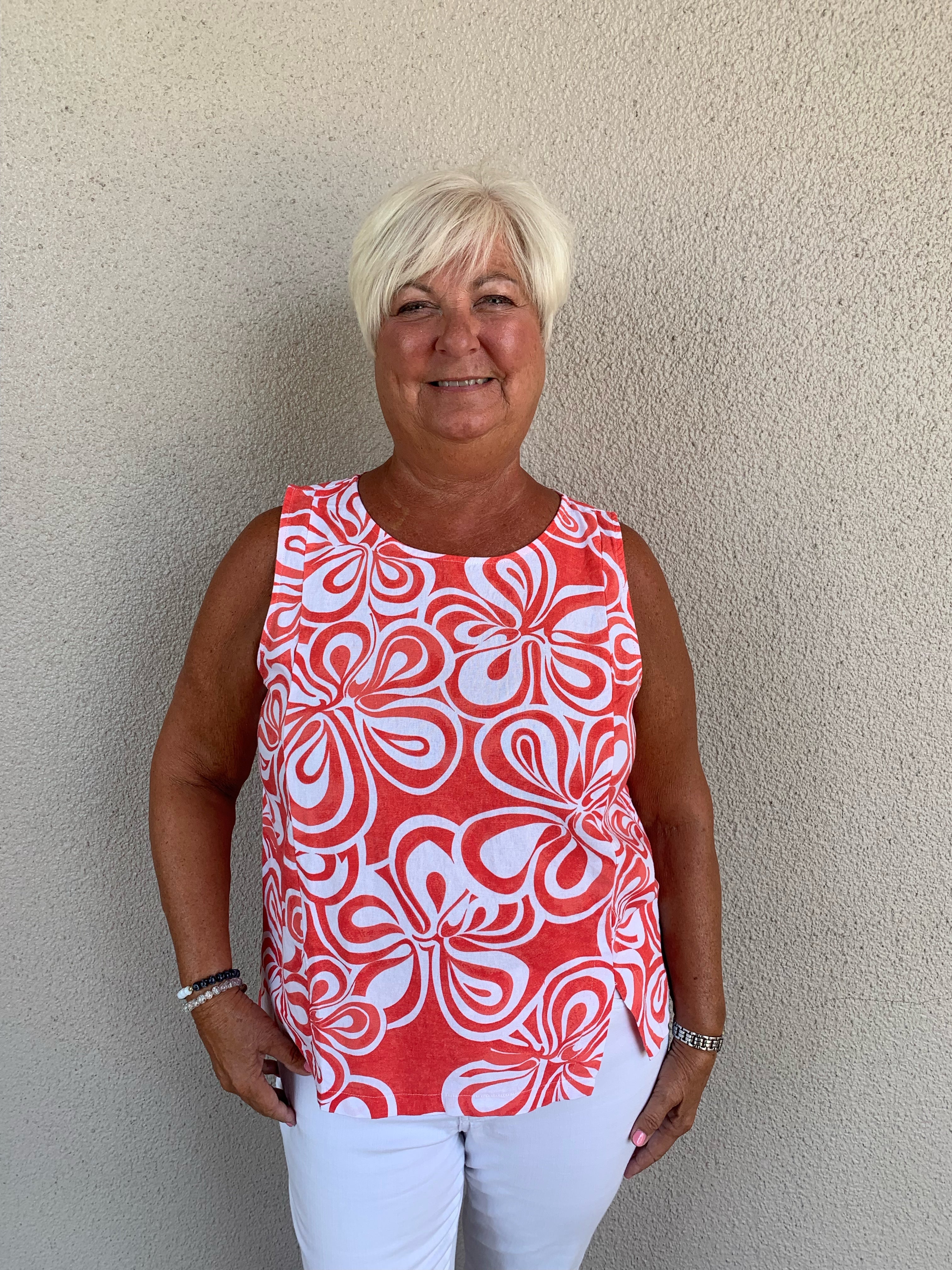 Tailored yet effortless, the Printed Sleeveless Linen Top with Princess Seams & Slit offers a polished take on warm-weather dressing. Crafted from a breathable blend of linen and viscose, this top features a soft hand-feel with a fluid drape that moves with you. Thoughtful design details like contouring princess seams create a flattering, structured silhouette, while a subtle side or front slit adds a touch of ease and modern edge.