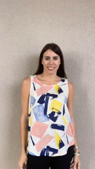 Stay effortlessly chic with this Printed Sleeveless Crew Neck Woven Top. Crafted from a soft and breathable rayon-linen blend, this top combines comfort with a refined look. The classic crew neckline and rounded hem add a polished touch, while the vibrant print brings a pop of personality to any outfit. Its sleeveless design makes it a versatile layering piece or a standout solo option for warm-weather days.