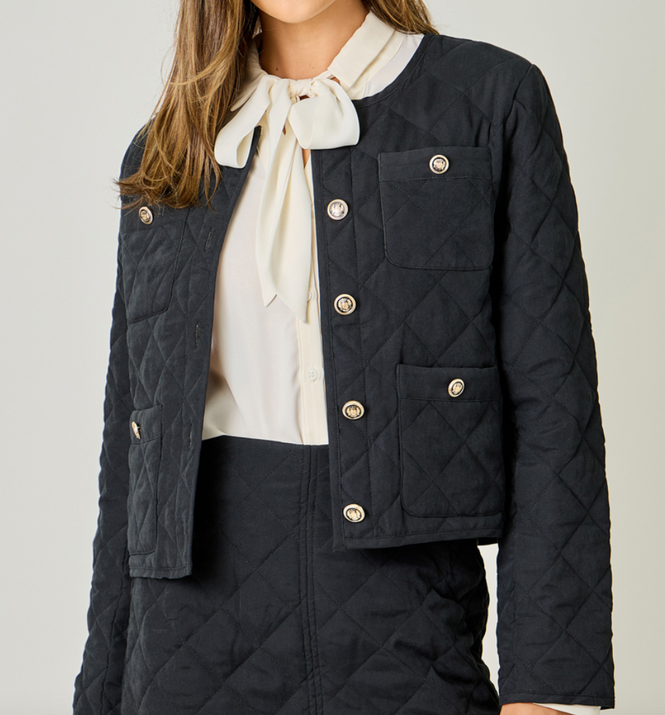Elevate your layering game with this quilted button front jacket—a versatile essential that transitions seamlessly from season to season. The classic quilted exterior provides lightweight warmth and a polished silhouette, while the charming plaid lining adds a pop of personality every time you move. Practical pockets keep your hands warm and your essentials close. Whether you're heading to the office, running errands, or enjoying casual weekends, this jacket delivers both comfort and style without compromise.