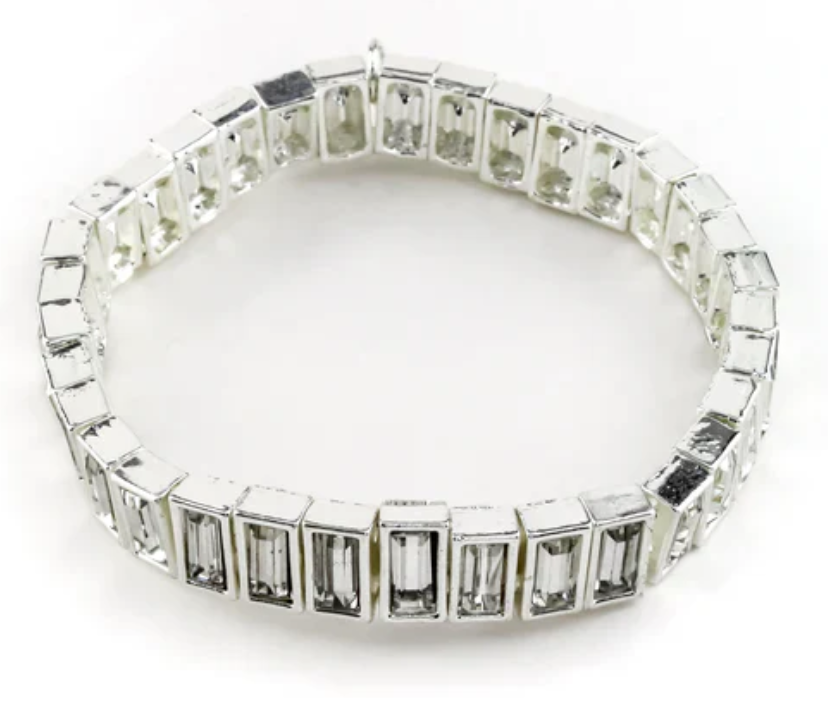 Elevate your style effortlessly with this Rectangle Crystal Stretch Bracelet, beautifully plated in 14K gold. Its sleek rectangular crystals catch the light with every movement, adding a touch of refined sparkle to any outfit. The stretch design ensures a comfortable fit for all-day wear, making it the perfect accessory for both casual and elegant occasions. Add a timeless piece to your collection that blends sophistication with ease.
