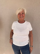 Elevate your everyday basics with the Round Neck Short Sleeve Cotton Jersey Tee, featuring charming blanket stitch detailing for a subtle, artisanal touch. Crafted from ultra-soft cotton jersey, this tee offers exceptional comfort and breathability, making it a versatile choice for any season. The classic round neckline and short sleeves create a timeless silhouette, while the contrast stitching adds a modern, handcrafted flair. Style it with jeans or layer it under a jacket for a polished yet laid-back look.