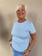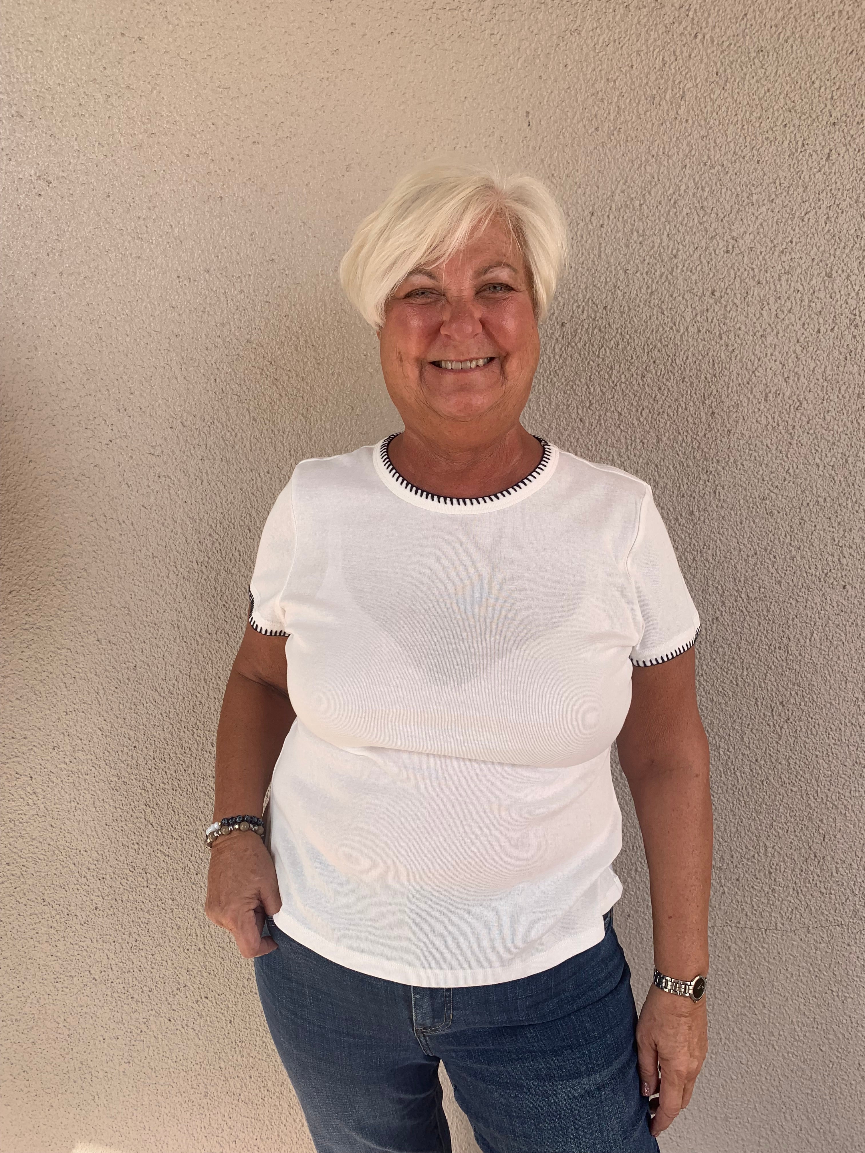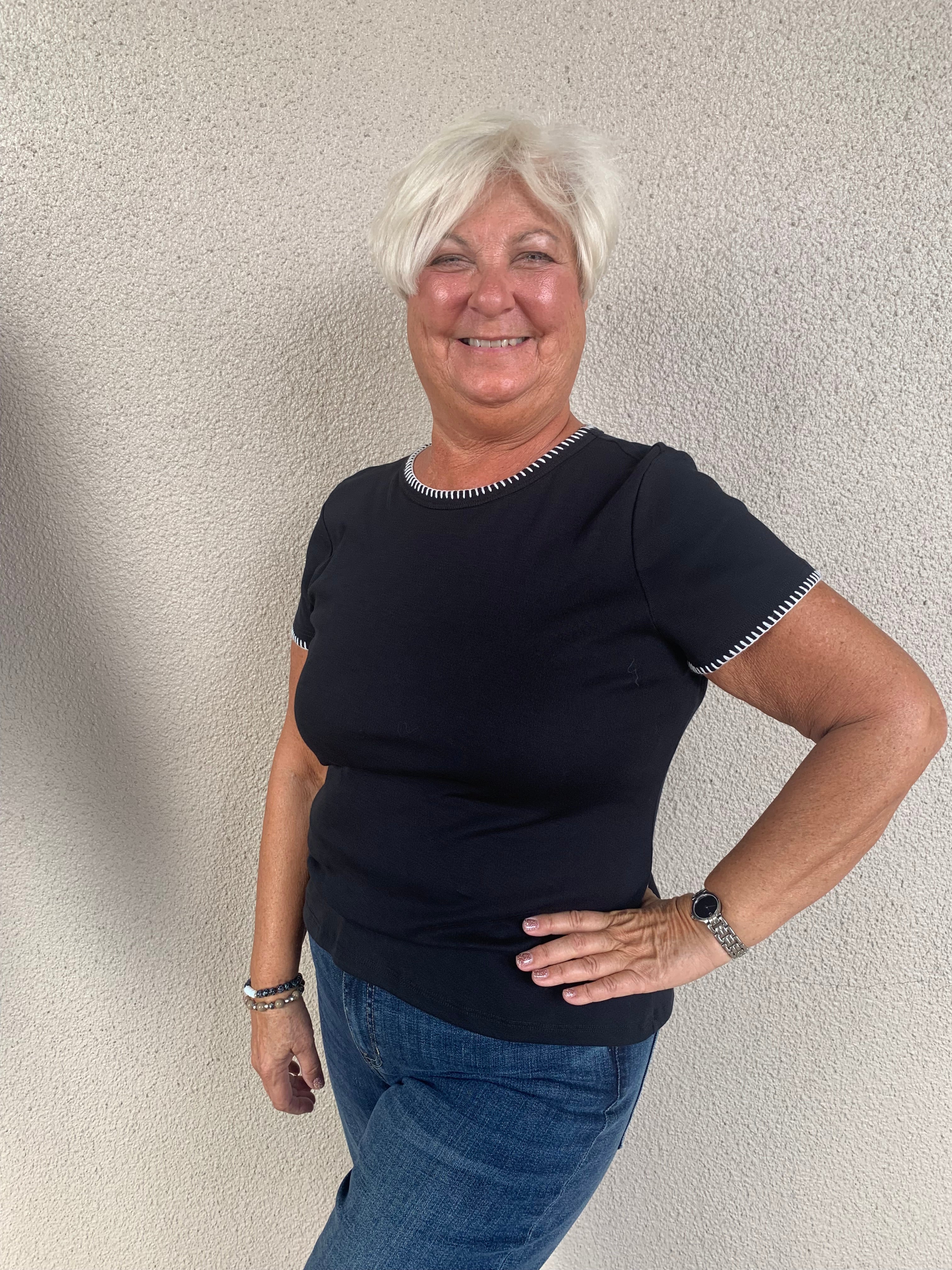 Round Neck Short Sleeve Cotton Jersey Tee with Blanket Stitch