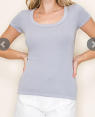 Elevate your casual look with our Scoop Neck Short Sleeve Ribbed Tee. Designed for comfort and style, our tee features a trendy scoop neck and short sleeves, perfect for any occasion. The ribbed fabric adds a touch of texture while providing a flattering fit. Upgrade your wardrobe today!