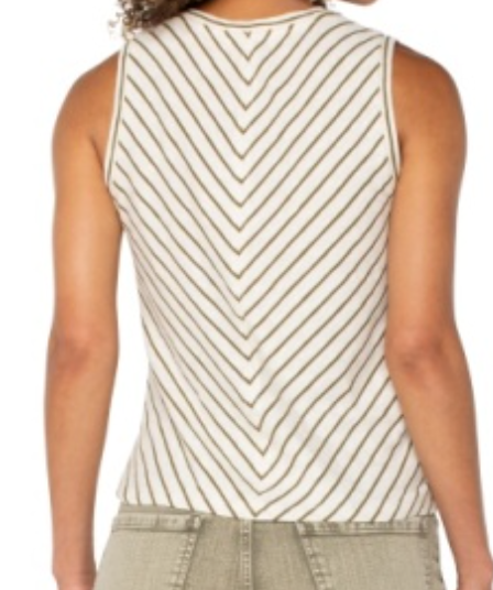 Sleeveless Crew Neck with Stripe Twist Front and Miter Back