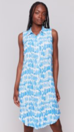 Sleeveless Printed Rayon Button Down Shirt Dress