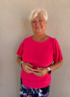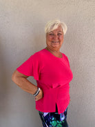 Solid Color Soft Knit 1/2 Sleeve Top with Stitch Overlay Detail