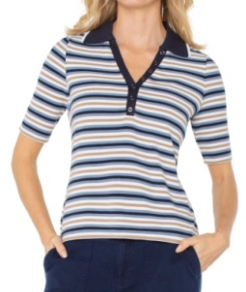 Elevate your casual wardrobe with the Stripe Half Sleeve Collared Henley Knit Top. Its breathable knit fabric and half sleeves offer comfort and style, while the classic collar and Henley button detail add a refined touch. Perfect for effortless layering or wearing on its own, this top combines versatility with a flattering fit to keep you looking polished all day.