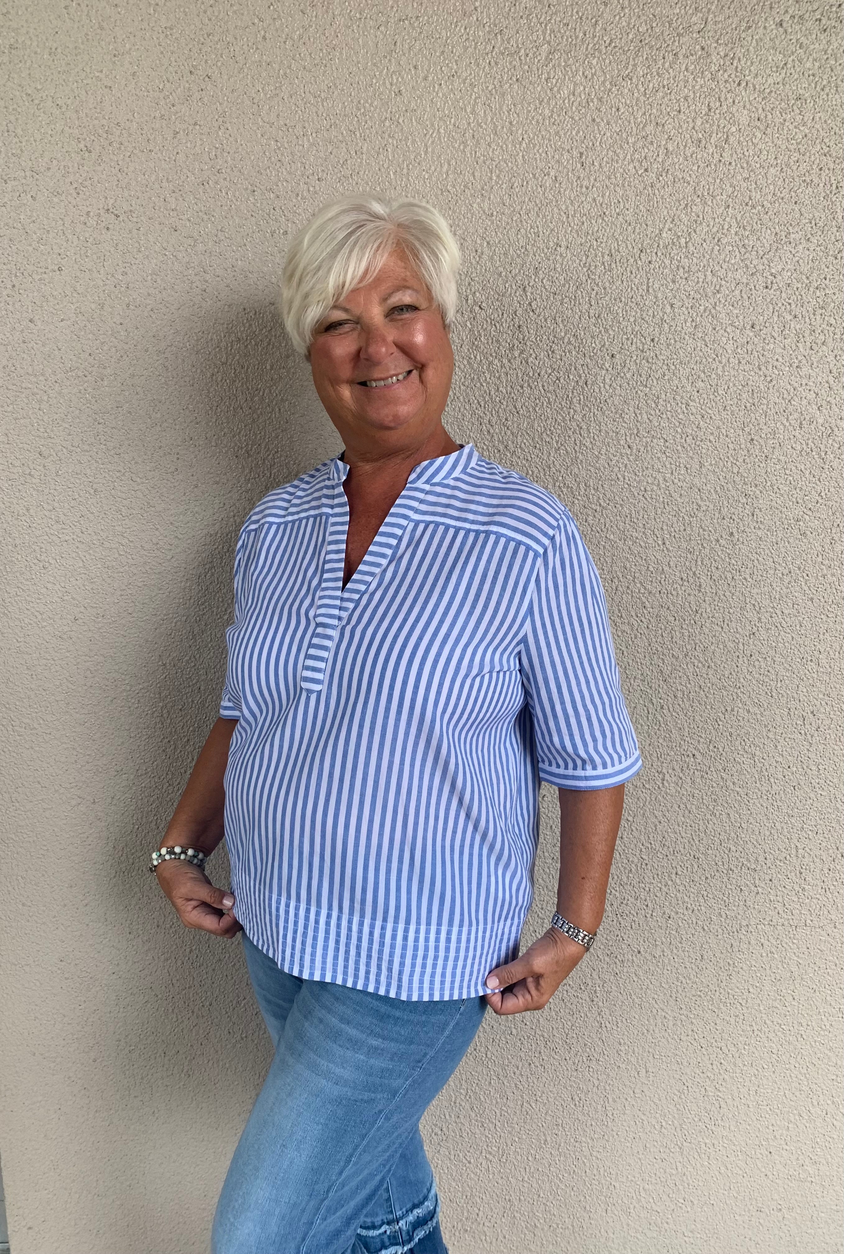 Stripe Printed Short Sleeve Pop-Over Blouse