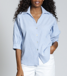 Elevate your everyday wardrobe with this sophisticated striped button-front blouse, designed to flatter and inspire confidence. The charming elbow-length blouson sleeves add movement and dimension, creating an effortlessly polished silhouette perfect for the office, brunch, or weekend outings. Crisp stripes bring visual interest while the structured button front ensures a clean, intentional look. Versatile enough to pair with tailored trousers, denim, or skirts, this piece becomes an instant go-to for layering and styling. A timeless addition that transitions seamlessly from season to season.