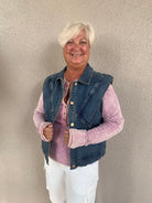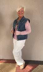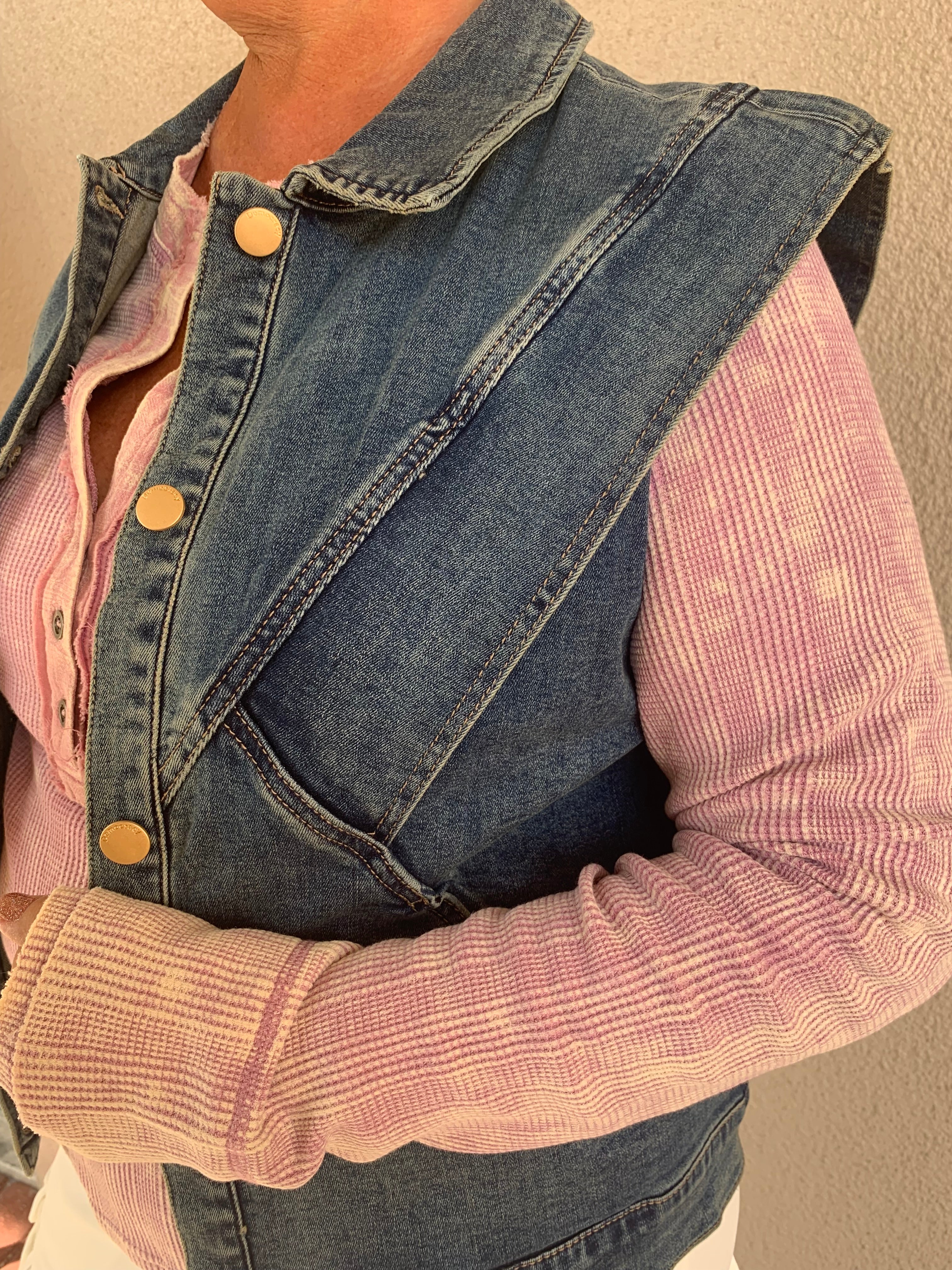 This stylish Flange Shoulder Denim Vest redefines casual cool with its contemporary design and functional features. Crafted from premium denim, it boasts unique flange shoulder details that add a structured edge to its relaxed silhouette. Thoughtfully designed with hidden seam pockets, this vest seamlessly combines practicality with modern aesthetics. Perfect for layering, it elevates any outfit, whether paired with a crisp white tee or a flowy blouse.
