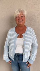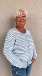 Elevate your layering game with the Waggle Weave Button Down Cardigan. Designed with a timeless round neck and textured stripes, this cardigan blends sophistication with cozy charm. The button-down front adds versatility, allowing you to style it open over a top or wear it buttoned for a polished, put-together look.