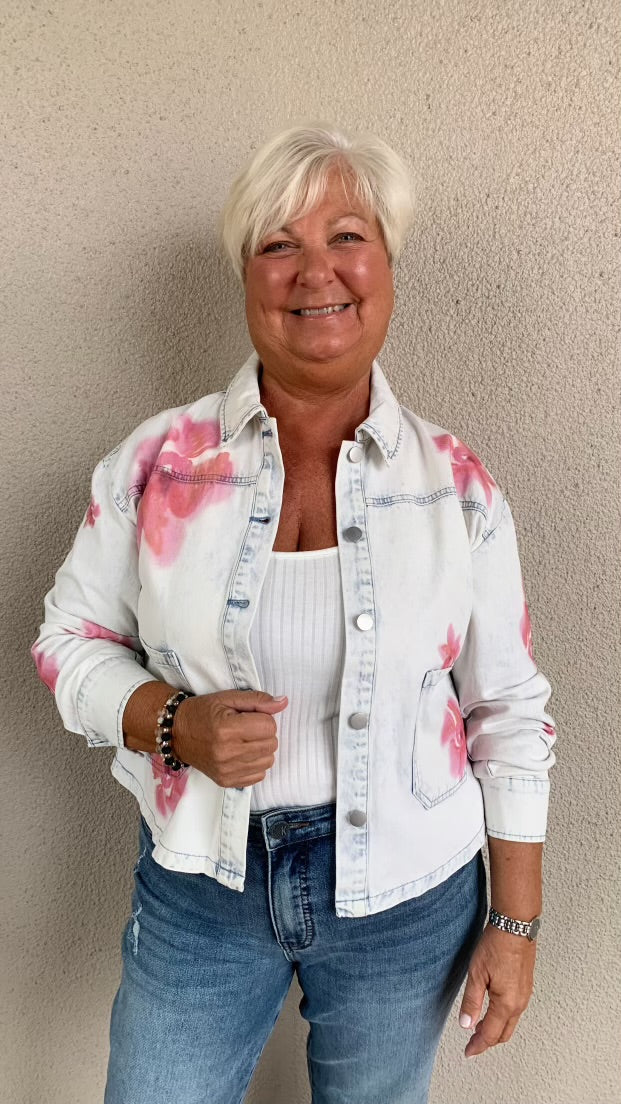Elevate your casual wardrobe with the Floral Printed Denim Shacket, where timeless denim meets feminine flair. Featuring a delicate floral print on washed denim, this button-down shacket offers a perfect balance of rugged and romantic. Functional pockets and a relaxed fit make it both stylish and practical, ideal for layering in any season.